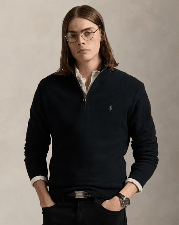 【Up to 59% off!】Mesh-Knit Cotton Quarter-Zip Sweater