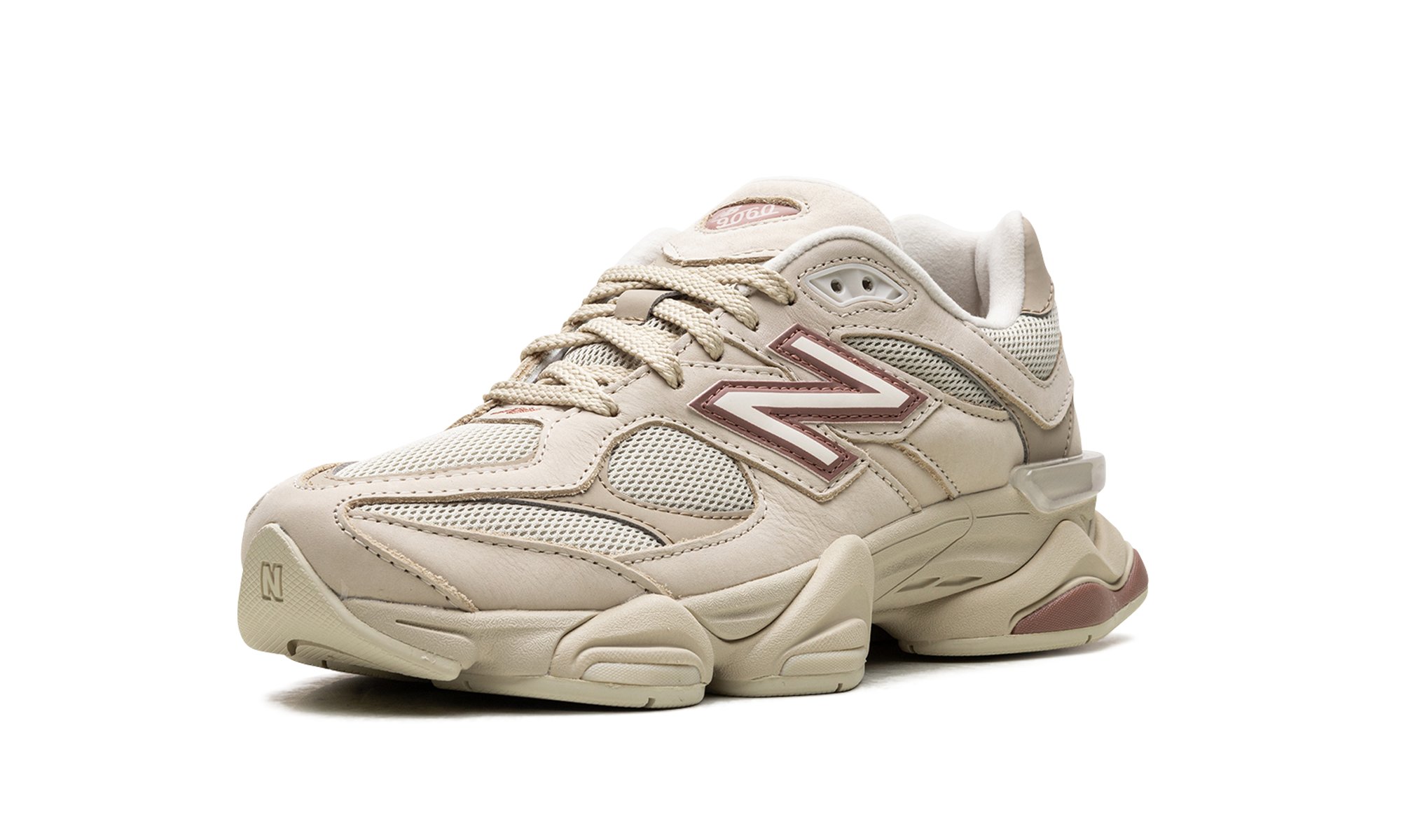 Embrace the chunky, “dad shoe” trend with the New Balance 9060 “Bone/Sparrow.” This sought-after silhouette features thick leather overlays for enhanced durability, perfect for colder weather. The “Bone” shade provides a clean, off-white aesthetic across the design, while a contrasting sage green mesh base adds a touch of color. Brown “Sparrow” accents further elevate the look, creating a stylish and versatile sneaker. Step out in comfort and style with this must-have addition to the New Balance 9060 lineup.