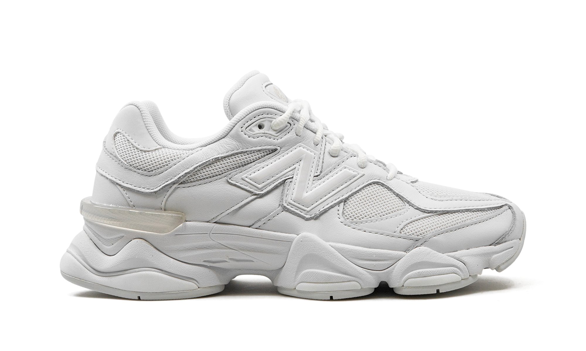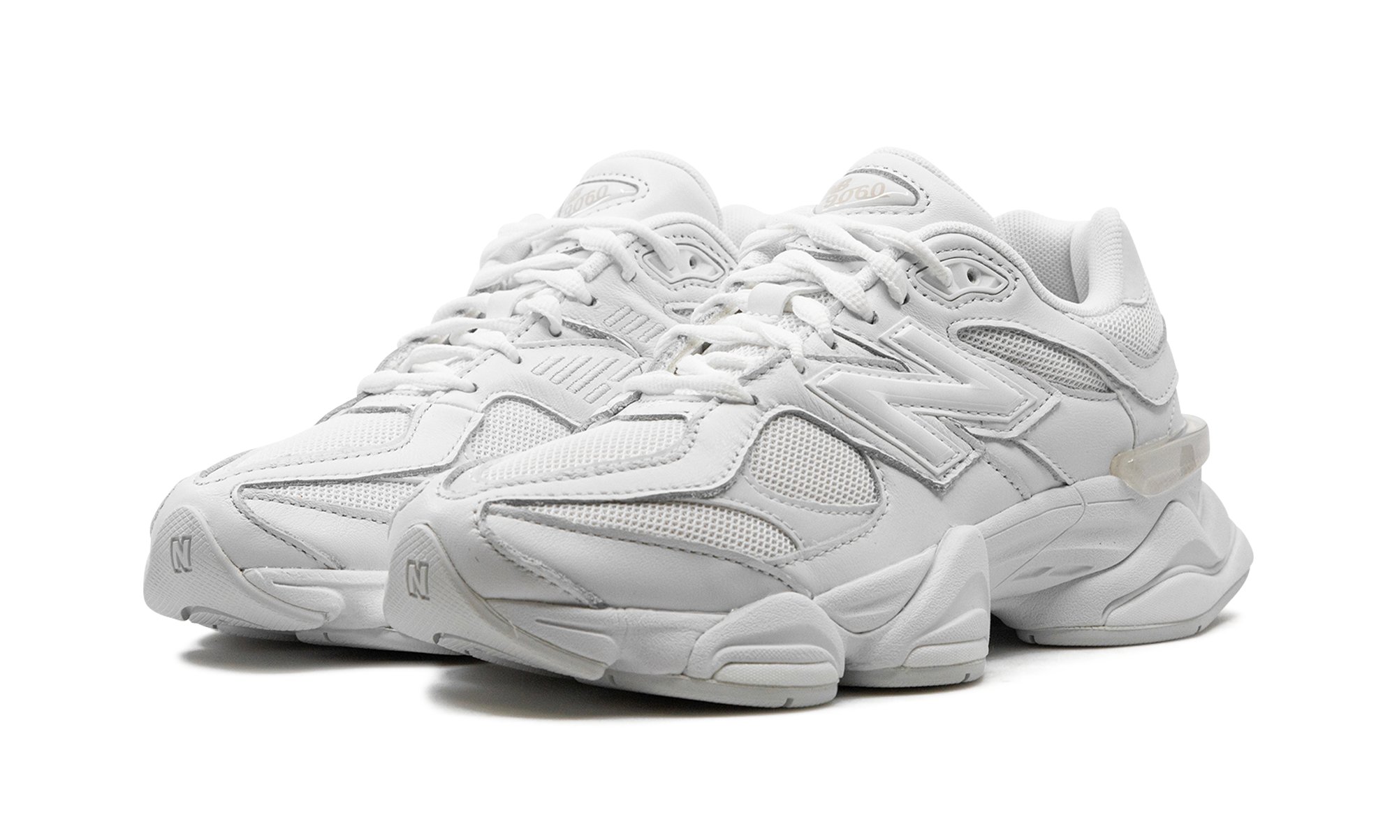 Discover clean, modern style with the New Balance 9060 “Triple White.” This sought-after shoe, popularized by designer Joe Freshgoods, offers a fresh take on classic New Balance design. Featuring a white mesh base and tonal suede and leather overlays, it delivers a monochromatic look. A white “N” logo and “NB 9060” tongue detailing complete this stylish and versatile sneaker.