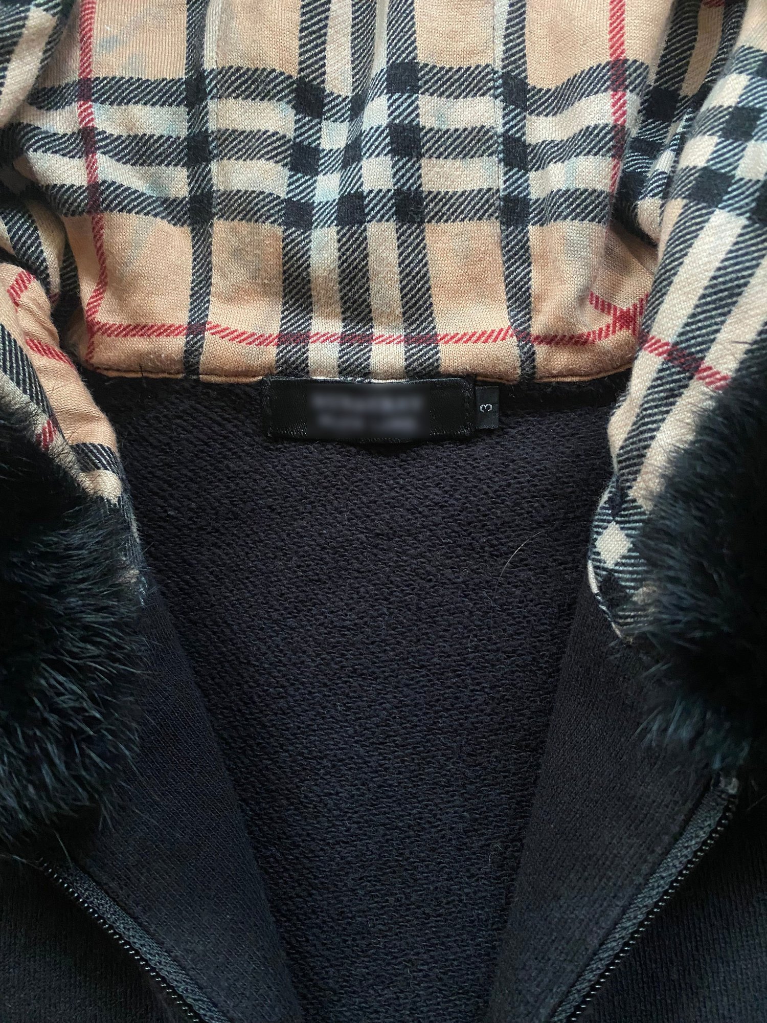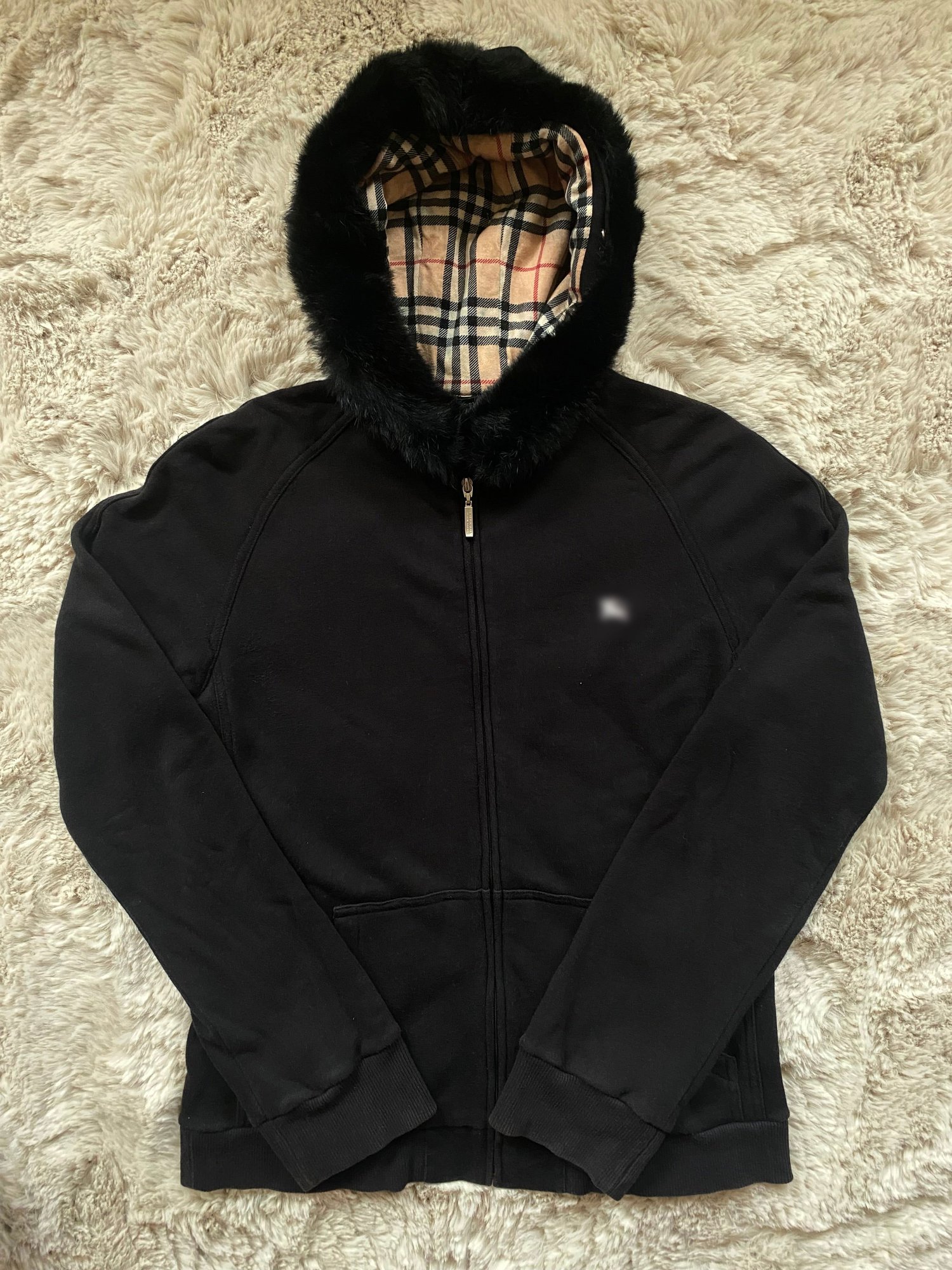 Japanese 2000s exclusive burberry fur zip-up hoodie