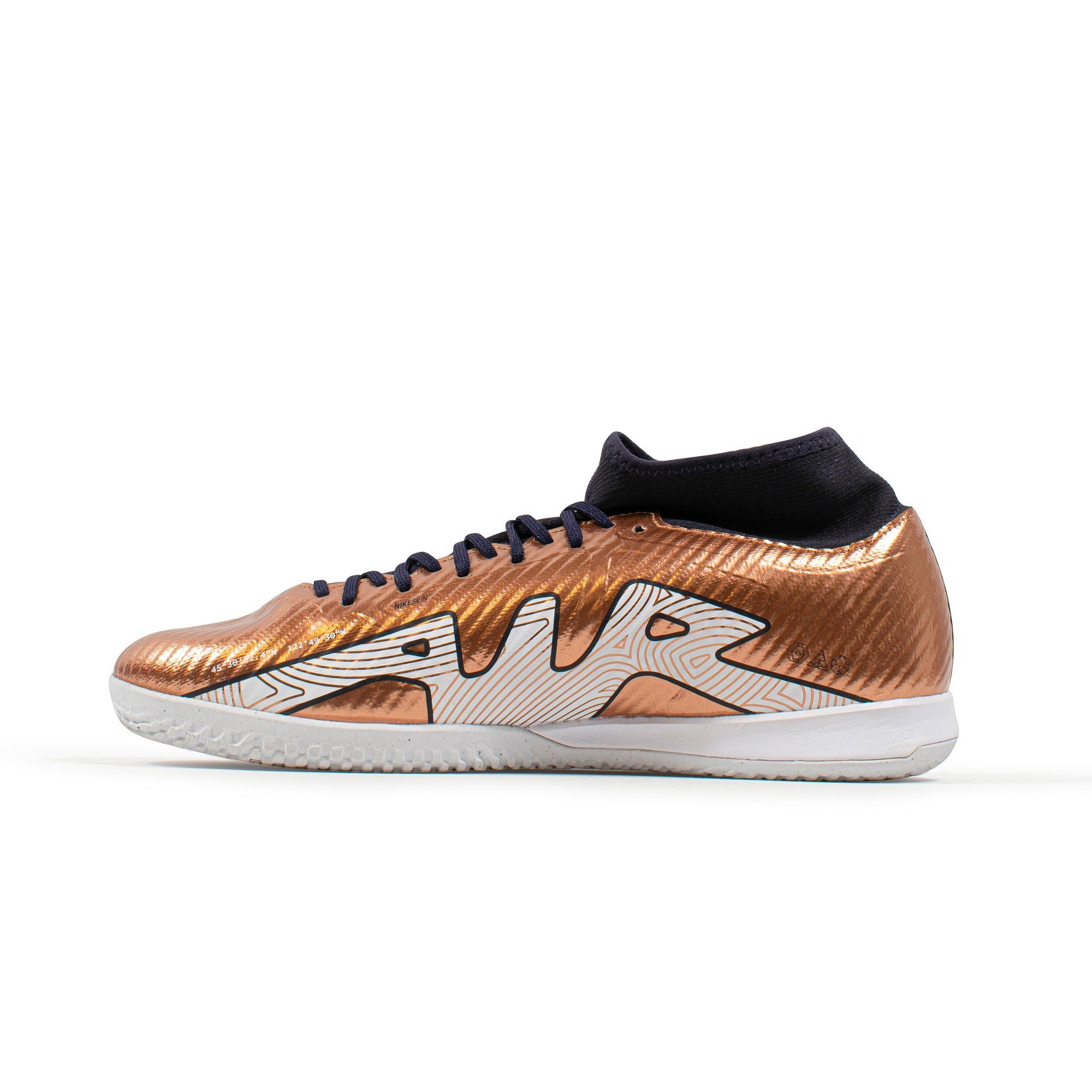• The upper uses a full synthetic material throughout, designed after the top end Mercurial Vapor Superfly model, featuring an identical cosmetic approach