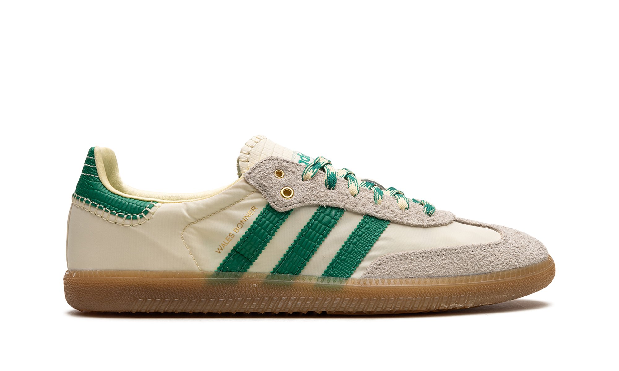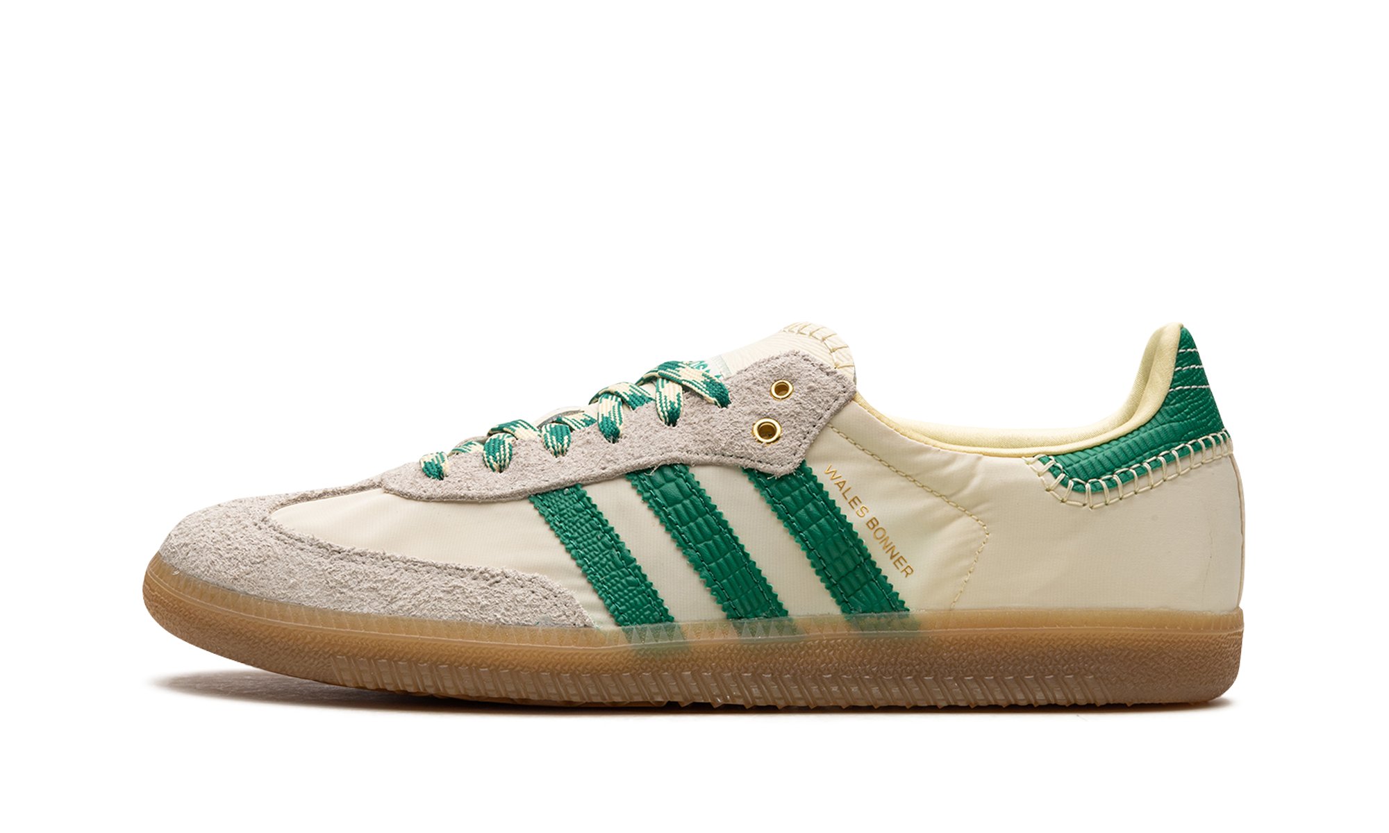 The Wales Bonner x adidas Samba “Cream/Green” is a collaboration by the talented fashion designer on the popular sneaker with intricate details. Yet another hyped release by Wales Bonner and adidas, the Samba seen here in “Cream/Green” features a cream-colored upper with contrasting green Three Stripes and “Wales Bonner” branding on the side. The eye-pleasing design has more green accenting on the heel tab as well as on the laces blended with cream. Hairy grey suede can be found on the toe and eyelets. Underfoot, a gum rubber sole completes the look. Release date: June 23, 2022