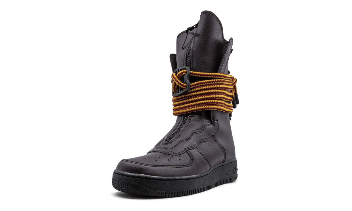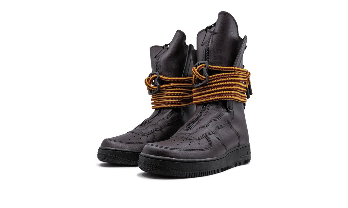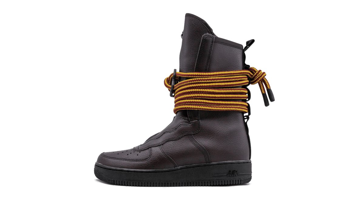 The Nike Special Field Air Force 1 High Boot, built for ultimate urban utility, is updated with premium leather material. The military-inspired sneaker boot can be worn in a variety of ways. Reflective details help the sneaker stand out and a front zipper and heel pull tab make for easy on and off. This Nike Special Field Air Force 1 High Boot comes in a sophisticated brown colorway.