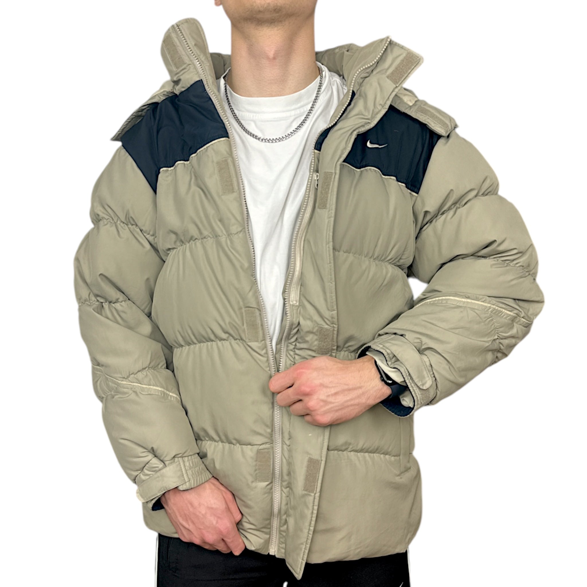 Nike Vintage Y2K Down Pufferjacke Beige Navy